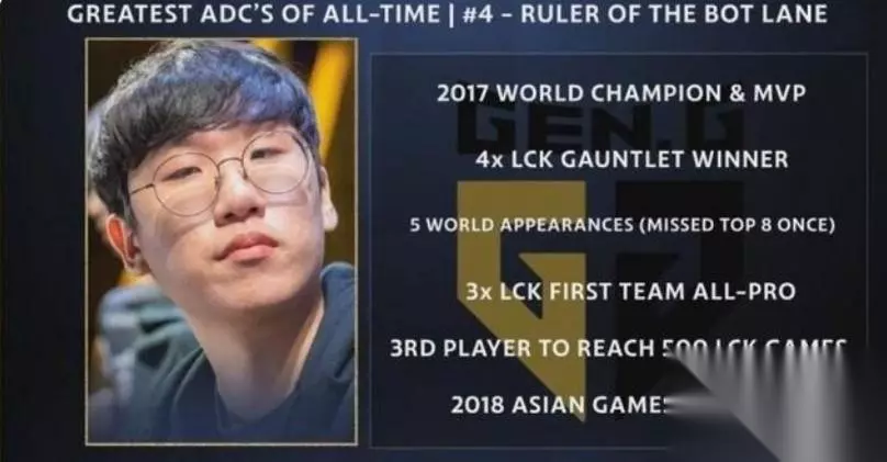 第三名:尺帝,尺帝自S6开始至今已经占据了三星AD位置长达6年,并在S7帮助三星夺得世界赛冠军。其实当年的尺帝有着天然漏刀的问题,明明是优势的三星下路,总能看到尺帝比对手补刀少,也在很长一段时间里被认为是三星的弱点。但不得不说尺帝确实是一年比一年强,不变的只有他的沉稳,虽然原文中没提到,如果要给尺帝选一个招牌英雄,那必然是EZ,虽然整体胜率一般,但尺帝的EZ无论何时掏出来,下路都给人一种极其放心的感觉。