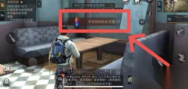第二个不对劲的彩虹天堂:餐厅 1、离开商会大厦,来到餐厅里面。 2、餐厅门口有一位老大,我们打完招呼后直接进去。 3、走到餐桌那里,在上面找到不对劲的彩虹天堂。