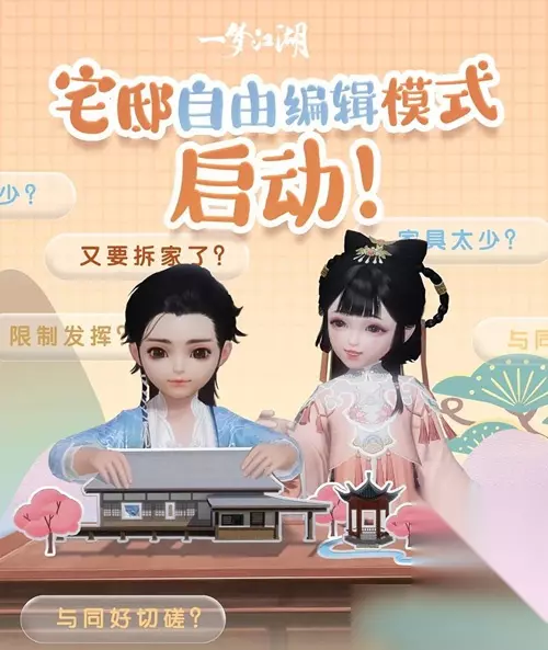 【宅邸自由编辑模式开启】 装修党的狂欢来啦——充足的家具、自由的编辑、自由的交流、自由交易打赏!少侠可以在该模式下自由使用宅邸系统的家具资源,自由发挥脑洞搭建。没有地皮限制、没有家具限制,有的只是你的搭建才华。该模式下,少侠还可以保存多个装修方案上传社区,与同样热爱装修的同好小伙伴们切磋分享。