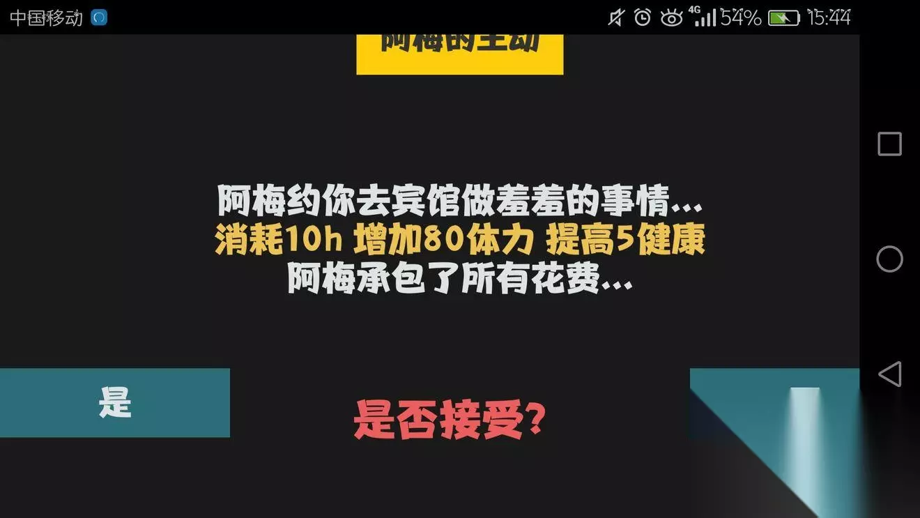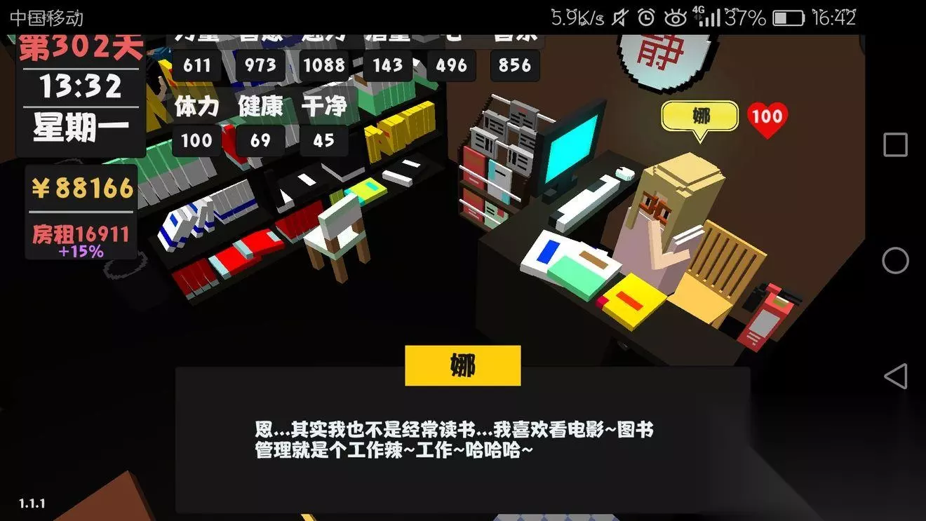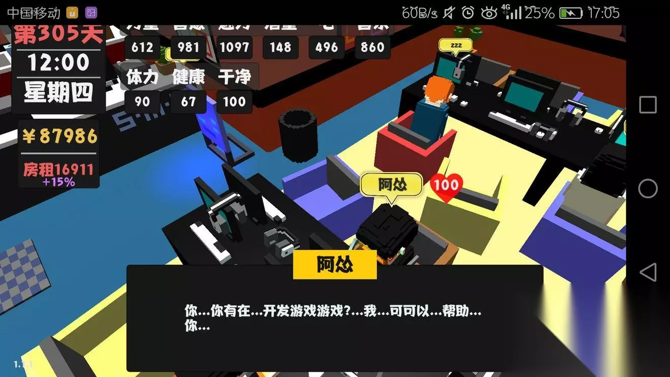 三、大嫂 会想刷大佬是因为右边那个小弟说,老大年龄大了,老大的位置。。。嘿嘿嘿,继承大佬的仪产,迎娶白富美走上人生巅峰什么的。 但现实给我了一大巴掌,大嫂泡不到,老大也不死,有时候还要给老大抗伤害,摔!一次十几点健康什么的!不干了不干了!再见 不过因为我不是保镖开局,我是后来有钱了乱刷的,,所以其实刚开始去当保镖好像还不错,钱蛮多的,老大也很大方,就是有人身安全问题【大雾】 四、房东 房东就很简单啦,请客,减少房租,请客,减少房租,如果七天左右吧,不大扫除,发生漏水事件,白白浪费两个小时然后房东还会降好感度,房租还会上去的_(:з」∠)_ 游戏发行商 听阿怂说呀,多和发行商聊聊可以涨价格,我一直以为是随机买的,并没有很直观的感觉到价格的上涨,毕竟我的智力也在涨,所以有空的话刷刷也行,毕竟聊天又不要钱的。 五、老妈 每次打电话都是说安排了相亲,单身狗表示,老妈你靠谱点啊,你说的妹子呢。 但老妈这个角色,我感觉是很丰满的一个角色有时候不止是代入感,好像还有作者自己的一些感情在里面,有一句话,玩的时候没有截图,想截图的时候刷了五天也没刷出来。 大概是:我有自己的坚持,没事的,等我真的没有钱了我会回去的。