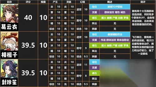 总而言之,开局最推荐抽取的三名角色,就是出于T0梯度的葛云衣,相桓子,封铃笙。这三位角色的综合表现都非常出众,值得投入资源重点培养。T2的角色,虽然后期强度一般,但是用来开荒也是足够。
