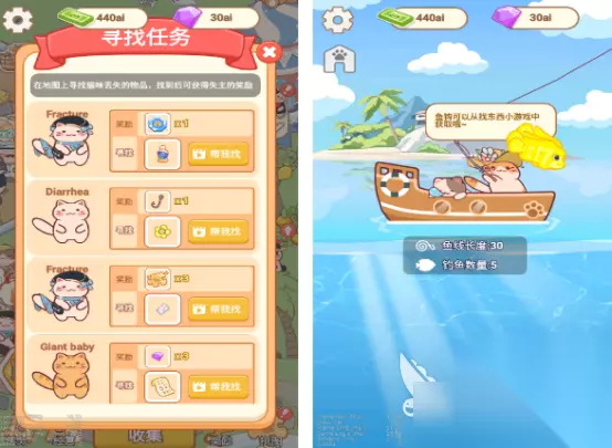 游戏里有很多可爱的小猫咪,也是可以在游戏的环境当中开启钓鱼的,还有丰富的故事剧情。讲述的就是流浪猫咪,由于捡到鱼竿等方式,开启了在海边开海鲜大排档的旅途,高度还原了模拟经营游戏的特色,整体也有着卡通的风格以及超多可爱的小猫咪角色。既能在海里面完成钓鱼的任务,拥有更多的鱼儿甚至是海鲜,也需要为了猫咪顾客提供各种美食,掌握各种制作海鲜的方式。 高速下载 普通下载 优先233乐园APP下载 打鱼休闲游戏游戏有哪些的内容,就为大家介绍到这里吧,对于有很多鱼儿的游戏,除了以简单的消除玩法为主,更有一些可以完成钓鱼的。比如上方几款,无论是以人物或者是小猫咪,可以开启钓鱼体验,都是轻松又简单的,你可点击链接下载。