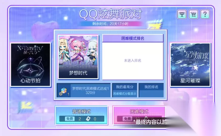备受期待的“QQ炫舞派对”小游戏也将同步登场,活动时间为10月22日至11月12日。该玩法以QQ炫舞三首经典曲目为基础,设置普通与困难两种挑战模式。每日普通模式可参与两次,困难模式则提供十次挑战机会。成功通关可领取当日奖励,高分表现还能解锁成就并进入排行榜赢取额外好礼。