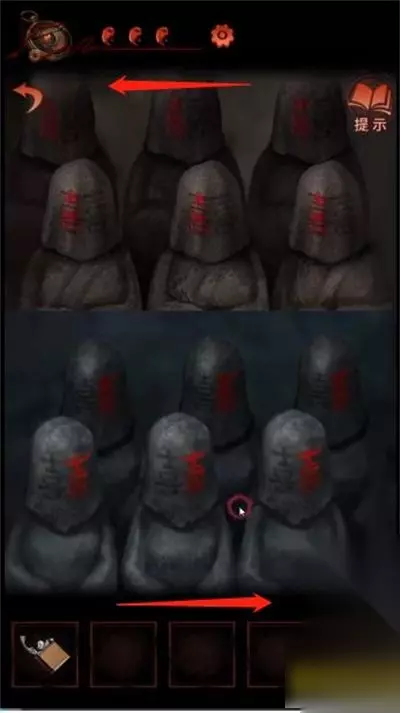 9、切换男主视角,也进入隔壁的“身外廊”,对话后,再切回女主视角。 10、点击左下角的石像。将上面的石像喜字调向左,下面的石像喜字调向右,获得猴子雕像。