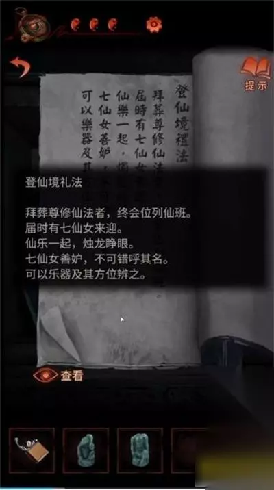 24、切换男主,进入最左侧方间,左下角箱子,因为箱子下的仙女像,所以根据七仙女壁画调整位置,获得线索2。