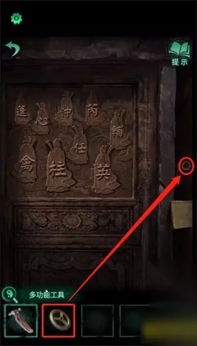 12、切换男主,利用多功能工具,将右下角石柱中的“凤冠”取出。