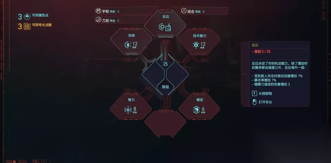 如果你走枪械流,开局建议把肉体、反应和技术属性都点到5,之后优先把肉体升到7,再回头补反应和技术,这样能更快地解锁相关专长提升伤害。要是你特别喜欢捡到的那把武士刀觉,想玩近战刀剑流,那就得兼顾反应和镇定属性,把镇定点高并解锁相关终极技能后,甚至可以做到刀刀暴击。玩黑客流则主要侧重智力属性。记住前期资源宝贵,加点要集中,千万别太分散,用智能武器就不用过分堆镇定,而使用需要充能的技术武器则要点出工程专精来加成伤害。