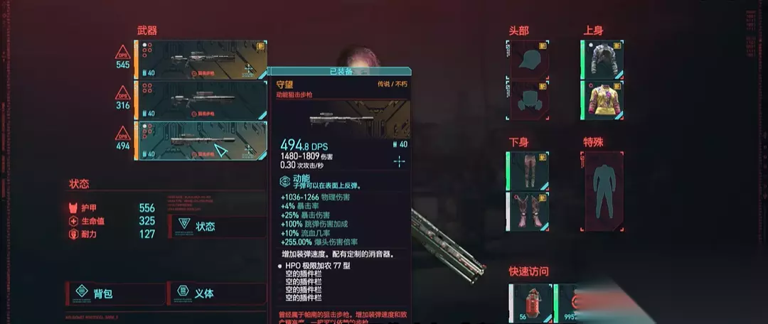 开局阶段最优先的选择就是在序章偷货任务里拿到那两把不朽武器。一把是手枪金刚,你潜入绀碧大厦后,在荒坂赖宣卧室的床头柜上直接捡走就行。另一把是武士刀觉,等T-bug帮你打开阳台门后,别急着从阳台跑,走左边的楼梯上到楼顶,解决掉两个守卫后,就能在他们看守的浮空车里找到这把刀。这两件家伙事儿基础伤害高还带特殊效果,前期拿来清怪效率非常高,能让你平稳度过新手期。