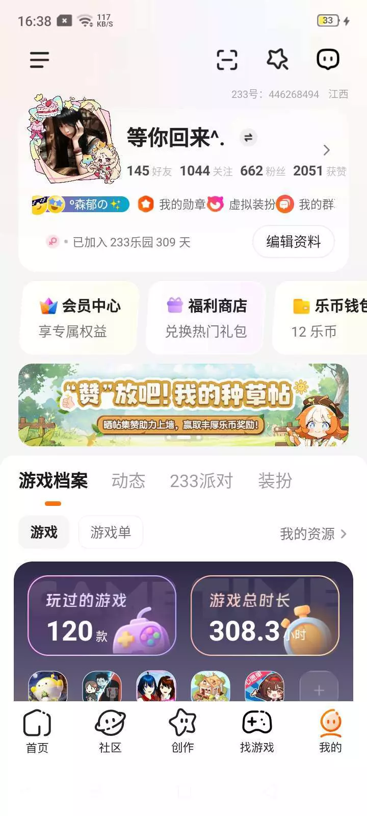 你们来233乐园多久了🤓🤓我的马上快有一年了