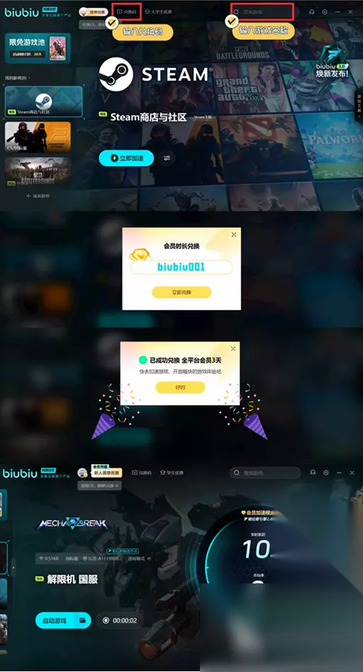 在进行第一人称的射击期间,如果玩家网络出现卡顿,很有可能会导致玩家丢失目标,亦或是浪费技能,为了避免玩家在游戏当中出现失误,可以直接下载biubiu加速器,来解决以上这些隐患问题。 新用户注册biubiu加速器,直接获得三个小时的免费加速时间,当然,直接输入兑换码【biubiu001】,还能够领取到三天加速时长,总共可以获取的加速时间为75个小时哦~