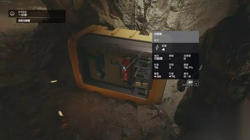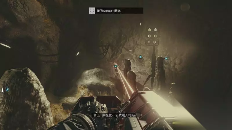 介绍完基本情况,林监工让你拿上切割器――矿工必不可少的工具。 (切割器可以采矿,也可以作为一个无限弹药但是威力小距离短的应急武器。)