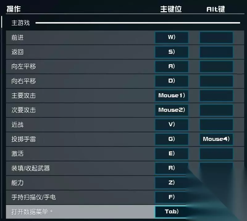 快捷键 游戏快捷键非常多,不过多数键位都是rpg常规键位,大家在键位绑定选项里可以细致查看,这里笔者主要提取几个重要按键进行说明―― F:扫描,长按开启电筒。 Tab:返回,星图界面长按可以直接关闭星图而不是一层层递进。 F5/F9:快速存取。 P/I/L/M/K:技能/物品/任务/地图/能力,记住这几个键就不用每次都从主菜单进入分选项了。 Alt:飞船界面下按住后可以方向键切换子系统并增减能量。 鼠标滚轮/中键:可以切换1、3人称视角。