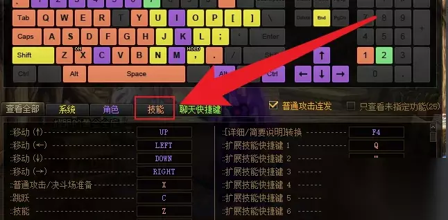 3、在快捷键设置中,点击技能选项。