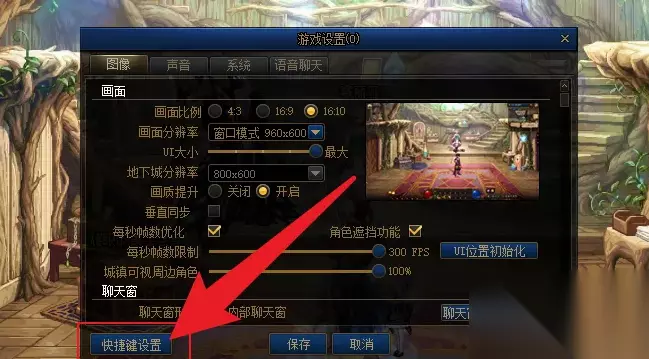 2、在游戏设置界面中,点击快捷键设置选项。