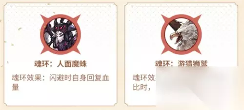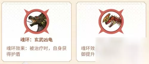 魂环一:四眼金鳞兽(加防御) 魂环二:报丧妖鸟(加血量) 魂环三:利刃螳螂(加防御) 魂环四:饥饿食人花(加闪避) 魂环五:黄臀象鼻猪(加回血)