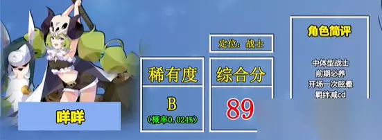 2、咩咩,定位战士,中体型,前期属于必定培养的角色,拥有开场一次眩晕的机会,还可以减少cd。