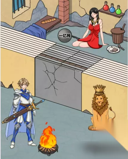 4、拖动火把到门上开门。 5、拖动面包给美女,再拖到门上开门。 6、拖动美女的项链到门上开门。 7、滑动狮子下巴,拖动脚下钥匙到门上开门。 8、双击地面裂缝地精帮忙开门。 9、拖动狮王皇冠到门上开门。 10、 拖动奶酪到老鼠洞,老鼠帮忙开门。 11、拖动红药水到蓝药水上,合成 紫药水。再将紫药水拖动到门上开门。