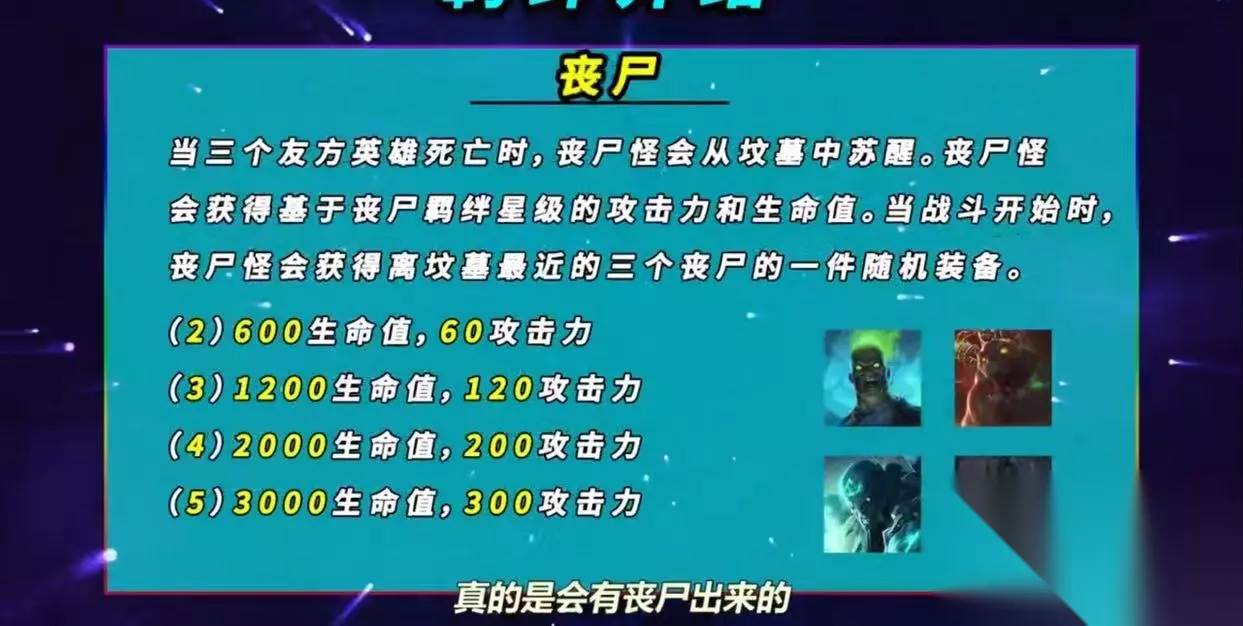 为什么会是基础的攻击力和生命值加成呢?因为场上丧尸英雄的单卡质量也将影响召唤出来的缝合巨怪的质量,这点机制有点类似S4.5的腥红之月羁绊,因此丧尸英雄的星级就很重要了,全员追3也是一个不错的选择。