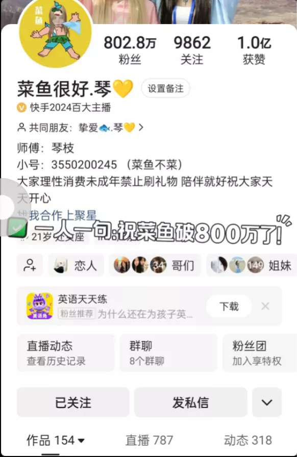 一人一句“祝菜鱼🐟破800万快乐”!