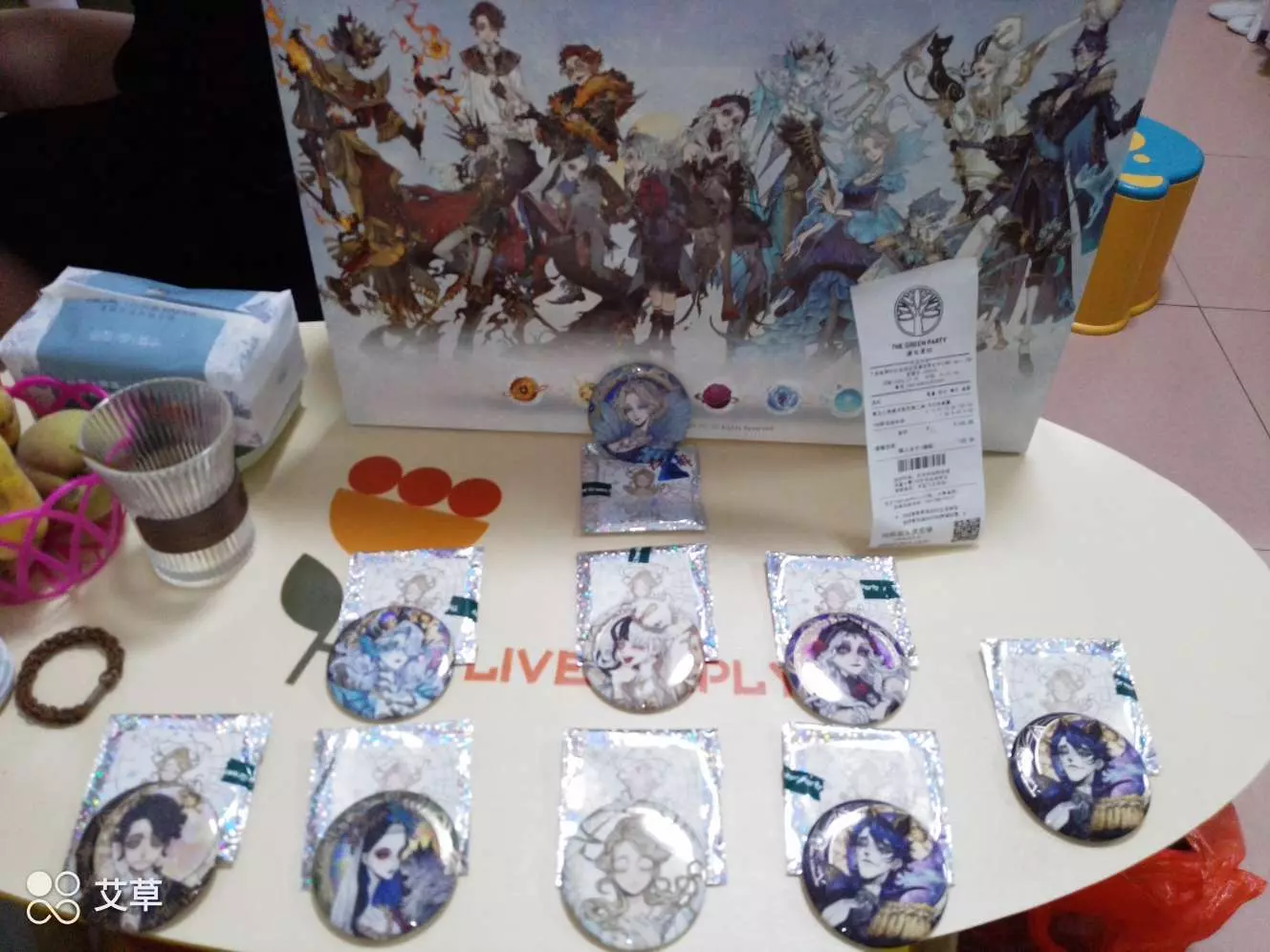 买了几个吧唧,花了我181,值了,一个19。还送了一个第五人格的袋子,夫人宝宝爱你呀