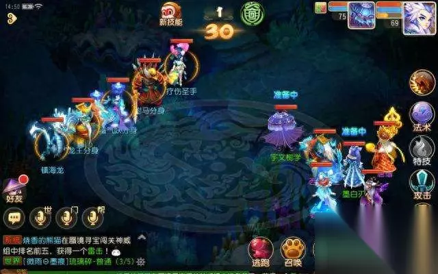 阵容配置好了,接下来我们来聊聊秘境中的怪物。首先一般来说前12关这个阵容基本上是没什么难度的,从13关开始难度逐渐增加。这里我们主要记住一个原则:优先干掉能够每回合群秒的龙宫系角色。由于我们队伍中能补的有三位,能复活的有两位,因此狮驼系鹰击和大唐系横扫,在他们休息时我们是可以奶回来的。唯独龙宫系每回合无论是群秒还是龙腾单点都非常难受,因此无论如何都要优先干掉。另外第一回合人物和宠物最好先选择防御来探一下怪物的伤害,同时可以化解狮驼怪物第一波鹰击的伤害。
