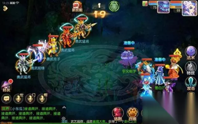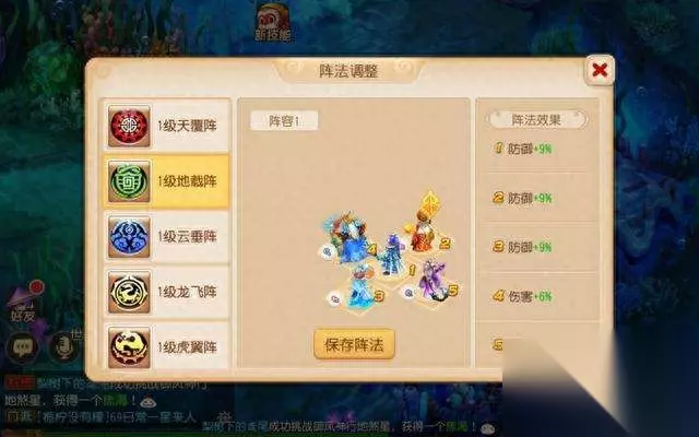 从阵容上相信小伙伴们都看出来了,就是依靠两位奶妈打消耗战,配合龙宫的不断群秒,最后让主角配合蝎子精索命解决敌人。因此阵法上自然是选择签到获得的防御性阵法地载阵。两位奶妈站两个防御位,龙王站伤害位,而蝎子精站速度位。