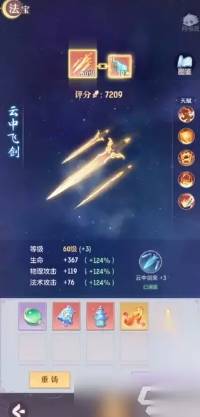 法宝养成方面,建议采用3+3合成策略平衡成本与收益,此方式有较大概率保留3个技能。每日完成海市蜃楼玩法可稳定获取蕴灵珠,这是提升法宝等级的核心资源。当法宝蕴养至10级倍数时需进行突破操作,消耗量会阶段性增加。
