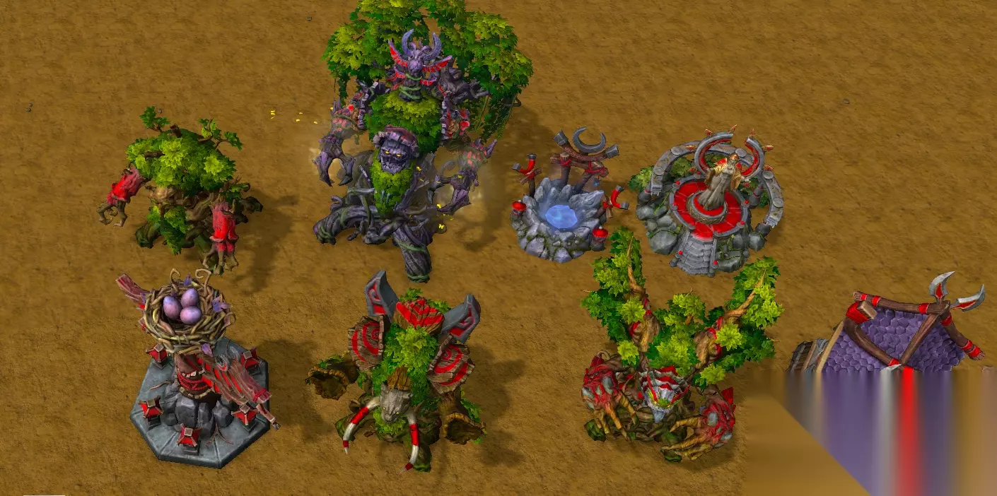 在看到暗夜精灵是最常用中立英雄的种族时,大多数玩家都会习惯性的认为暗夜精灵的本族英雄是不是不够强大。事实上,暗夜精灵的所有英雄都非常强大,从属性、技能和成长能力上来看,每一个英雄都是可以从前期强势到大后期存在。可也正是因为他们都太过强大,彼此之间配合难度也大幅度提升。这也才使得了,很多玩家在选择暗夜精灵这个种族后,如果不采取本族的单英雄玩法(比如单守望者速6),基本都会选择一些中立英雄来让英雄彼此间的配合变得更好一些。 需要注意的是,随着月亮井的些许增强,其他3族战术思路纷纷出现改变,丛林守护者成为暗夜精灵的常规首发英雄后,暗夜精灵本族英雄之间的配合好了不少。不过,根据玩家自身的战术选择、对手种族战术上的不同,暗夜精灵需要选择中立英雄来弥补本族英雄缺陷,或者是提升本族英雄能力的时候依旧不少。 建筑物