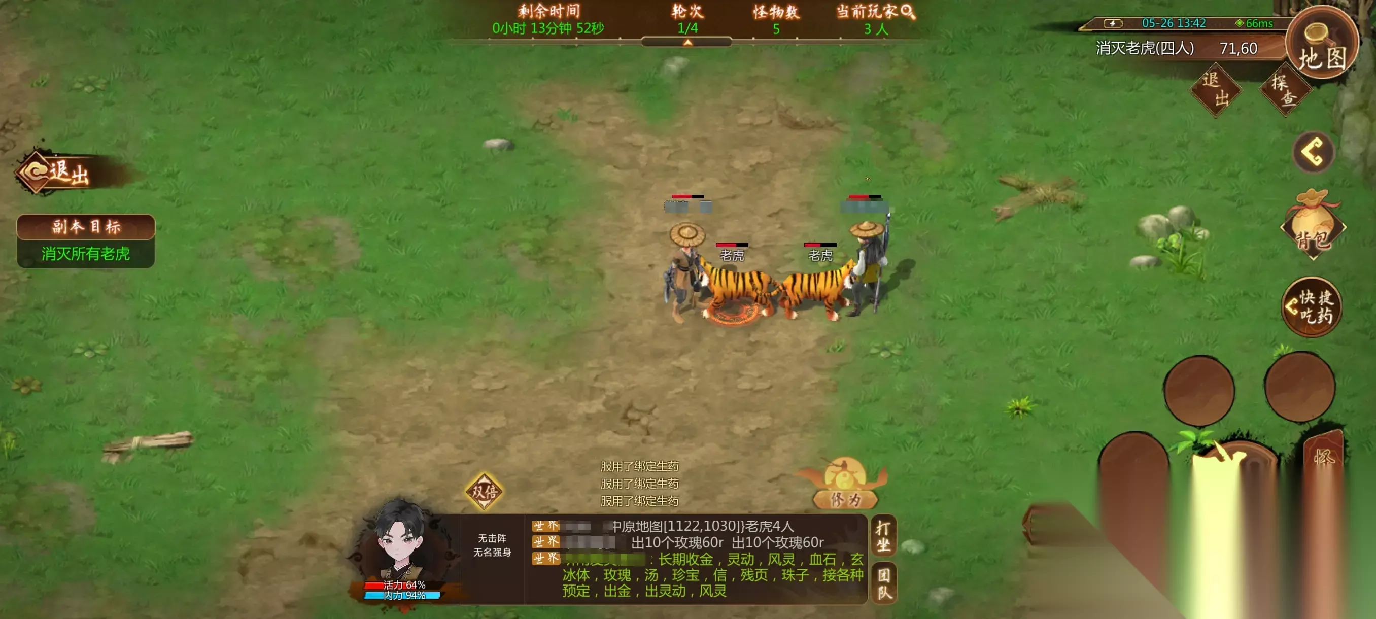 一、随机副本 随机副本的玩法比较简单,有三种,一种就是消灭怪物,需要在规定时间内将所有怪物都消灭就能通关;第二种就是BOSS战,在限定时间内将BOSS击杀即可;最后一种是保护NPC,在规定时间内保护NPC不被击杀且清理完所有怪物即可通关。 其入口会在大地图上随机刷新,随机副本进入也是有一定条件限制的,首先是修为等级限制,修为过低是不能进入高难度的副本,1级副本没有修为要求就能进入,2级副本需要15点修为,3级需要30点修为,4级需要45点,5级需要60点,副本的难度从低到高以颜色区分,绿,蓝,紫,橙,红,可以强行挑战五级副本,不过需要500的钱币门票;随机副本的1234每个级别都包含所有对应的怪物,副本的等级越高,掉落物品的概率越大。