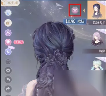 点击「显隐」按钮可「显示」或「隐藏」发型自带装饰(如图15); 适合搭配简约风格或避免装饰物遮挡其他部件。