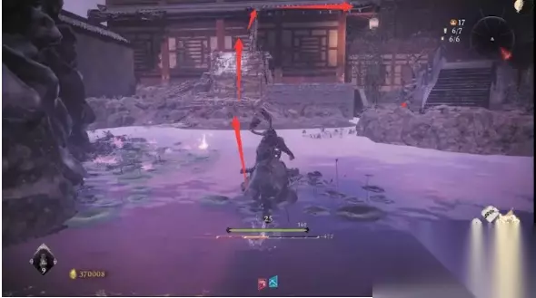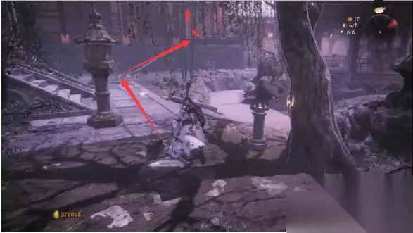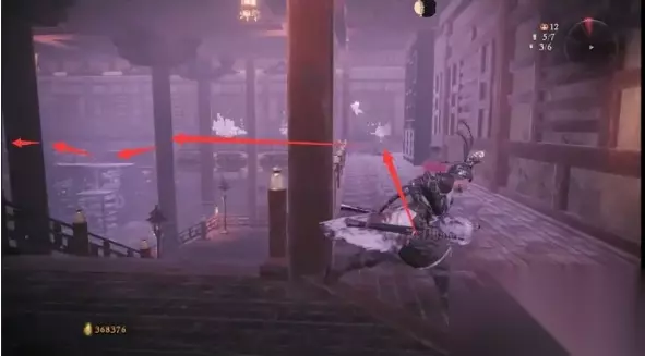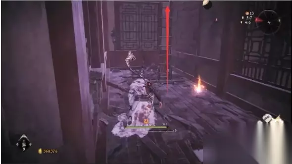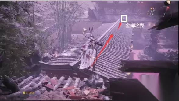接着原路返回,前往最终BOSS房门前的小花园,进去后我们接着朝刚才开梯子点的位置上去,通过二楼缺口可以跳到对面长廊顶上,走到底准心处是第二个金蝉之壳