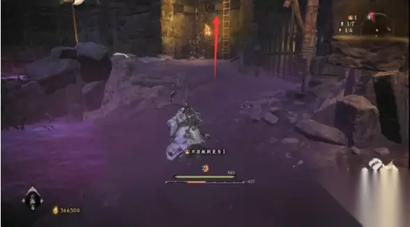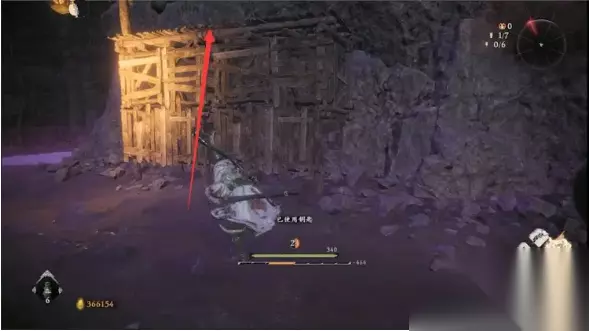 通过木头架子跳上二楼,右转走到底可以发现本关卡的啮铁位置