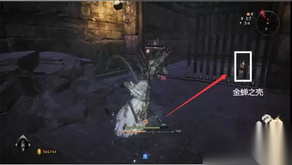 插完后接着通过右边梯子上去,接着这边另一面跳下,这里有大小刺猬,小刺猬背刺解决,大刺猬直接硬刚,打完后里面是牢房区的金蝉之壳
