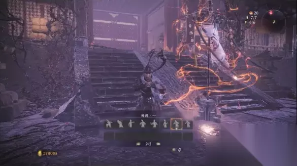 打完BOSS后右转上台阶,一路往上爬到顶就是第四个大牙旗位置,这里可以选择更换奇术或者调整保存好的技能搭配和装备,用来对应下一个区域的战斗