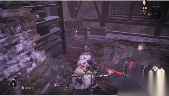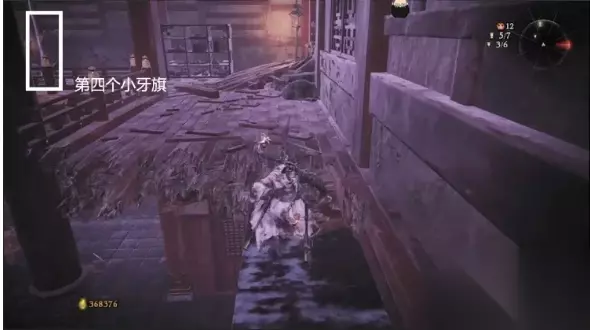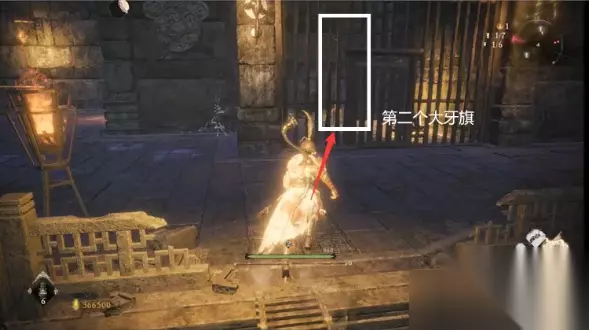 接着上台阶跳到对面,顺着右边柜子上去,这里有个暗道,进入后先别下去,左前拐角木箱下有个手记记得拿上,接着跳下去一路走到底就是之前在白蛇BOSS房看到的第六个小牙旗点