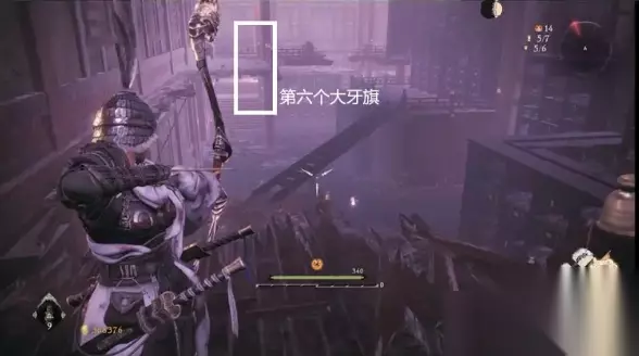 背后是一个缺口,可以直接出去,通过二层顶上瓦片前往下个区域 往前左转进入缺口可以放下梯子,同时进入里面后会触发NPC入侵,可以考虑直接在这个狭小空间战斗,入侵者会从同一个缺口进来,我们只要守株待兔就行了 接着通过梯子爬到三楼,这边插旗点右上方会有一个刺客在房梁蹲点,同时这里是第五个小牙旗点