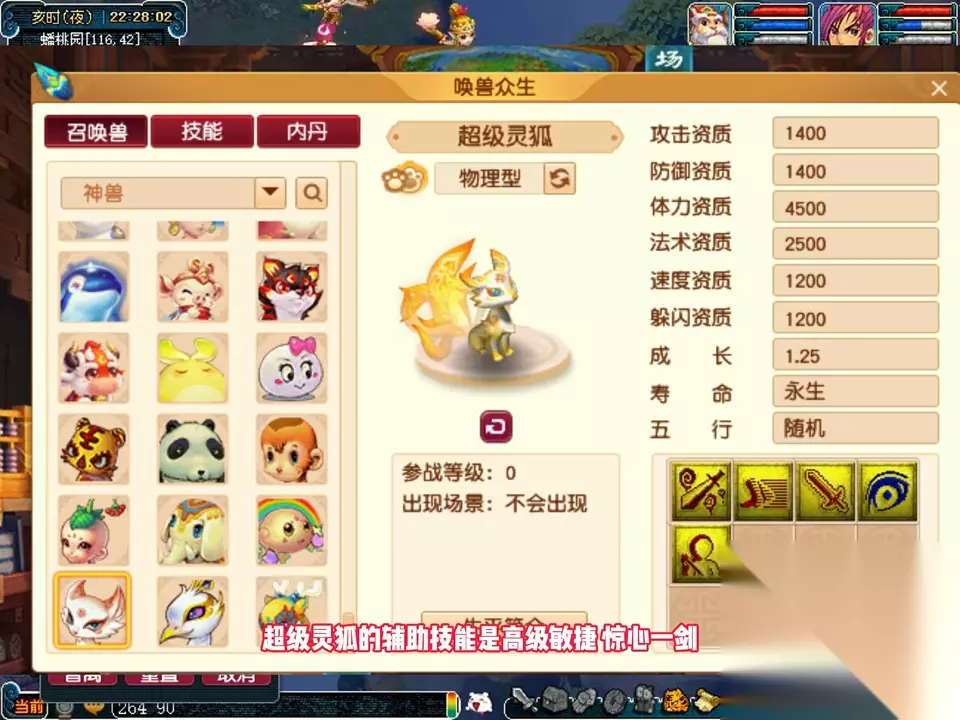 同档次技能接近的有:超级灵狐、其中超级灵狐的辅助技能是高级敏捷、高级幸运、超级灵活的辅助技能是高级敏捷、惊心一剑、超级土地公公的辅助技能、高级敏捷、高级神佑。明显要高一档次与打了高级神佑的超级神兔技能几乎一样,价格比超超级神兔低了两千多。
