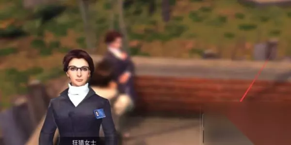 第三步:接着来到NPC狂猎女生的旁边,选中她后再点击对话框中的交谈按键,进行对话;