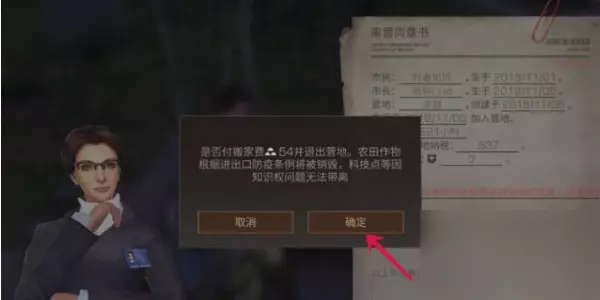 第六步:最后玩家确定要退出这个营地就可以点击营地同意书第一页下方的方框一下这样就会出现下图所示的对话框了,然后点击确定按键就会退出该营地了。
