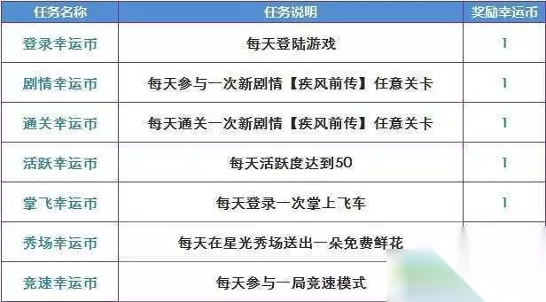 t15_2-t15_1:7.0 标签: 红宝石 QQ飞车手游欢乐幸运币活动是这个游戏中刚刚上线的一个活动,很多小伙伴都在问这个QQ飞车手游欢乐幸运币活动是怎么玩的?小编就为大家带来了欢乐幸运币活动玩法奖励汇总!