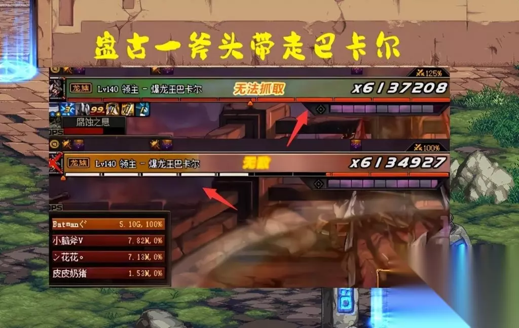 依旧是熟悉的B叔,二觉真龙星君,外号“盘古”,还带着4件改造,名望4.6(比似雨幽离和宝哥低多了),在3位队友以及7排buff加持下,一斧头就带走了巴卡尔!(人形态和龙形态各一斧头,要不是强制锁血,估计巴卡尔还没反应过来就躺下了) 这个故事告诉我们一个道理,在绝对的伤害面前,机制也显得毫无意义了(除了强制锁血),在盘古的斧头之下,众生平等,驱魔是驱魔,盘古是盘古,这可不是同一个职业!