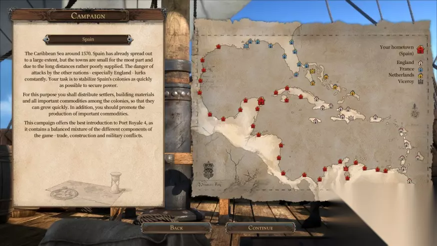 我们耳熟能详的日不落帝国称号,在16世纪实际上属于西班牙。凭借加勒比的殖民地所创造的空前的财富,马德里(西班牙首都)的权贵过上了安稳而又舒适的生活,而那些无权无势的人也可以选择前往殖民地,将财富横跨大西洋运回欧洲,用旅途中的高风险换取自由以及财富。当然我们都知道,诸多欧洲列强也对殖民地虎视眈眈,而随后历史上也发生了列强之间的殖民海权争霸时代。随着日不落帝国称号的易主,各国也展开了一系列空前的海战、征服与尔虞我诈,这也正是《海商王4》中玩家将会体验到的种种内容。