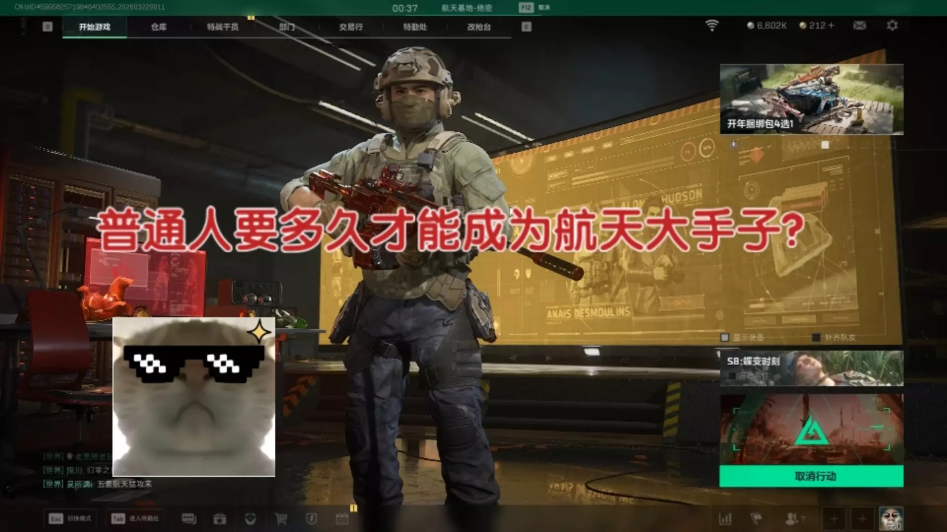 这是《三角洲行动》的游戏内容,玩家老飞宇在航天基地对局中撤离失败,同时该玩家称自己37级开刷点券,还喊话官方,表达了对官方封禁的调侃。