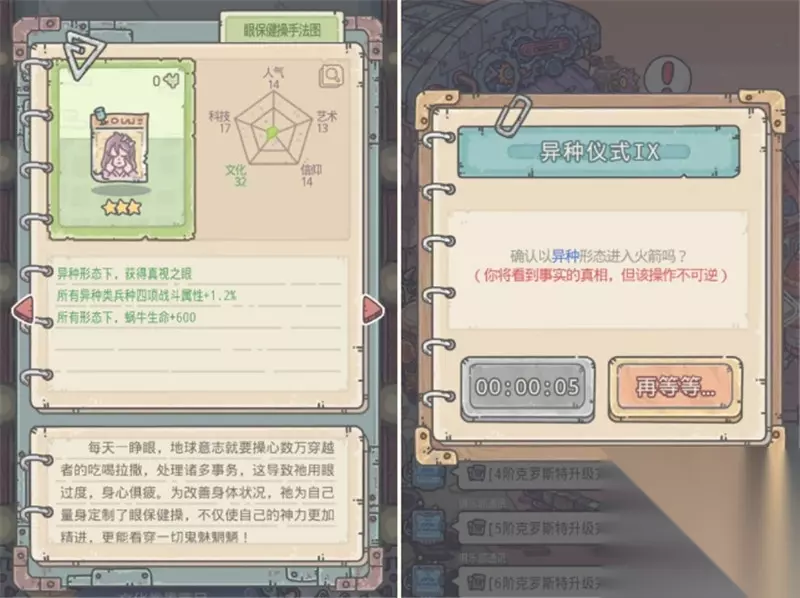 3. 召唤地球意志,获得进阶指点——第14天 ① 神坛触发降神,听取地球意志指点,获得绿贵『眼保健操手法图』 ② 激活贵重,切换异种形态,接受那不得不面对的真相……