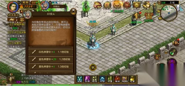 日常任务之——王城运镖 奖励类型:EXP(经验) 推荐指数:★★★★★ 难度:容易 耗费时间:10分钟左右 王城运镖作为经验奖励类型的日常任务,完成任务获取经验可谓是海量。运镖任务每天可以限定接取3次,押镖时随机接取“白色、蓝色、黄色、绿色”镖车中的其中一种,绿色镖车给的经验最高,同时接取到的几率也是最小。同时,在玩家押镖过程中,还有2次免费换取镖车等级的机会,也可以使用黄金进行有偿更换。以我48级为例,三次镖车颜色分别绿色、蓝色、蓝色,完成任务总共获取了11637562点经验值,相当于占了升级经验的72.6%,所以运镖任务是推荐玩家必做的日常之一。