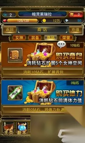 战斗胜利后结算奖励 在游戏内容上唯一的亮点就是游戏副本以经典的dota地图为背景,并以地图的不同方位设定各自的副本。这样可视化的副本模式既抛弃了原来那种列表排列的老旧方式,而地图图像展示让副本更有可读性。 游戏费用:6.2分 游戏下载免费,设置了较为全面的内购系统。钻石可以购买体力药水,扩充背包,也可以购买万能之灵用于招募新英雄。另外VIP系统也有涉及,从VIP1至VIP12不等,充值100钻石获得VIP1,而最高需要100万钻石,数量相当惊人。作为一款休闲游戏,我相信除了土豪以外不会有人愿意当这样的冤大头的。