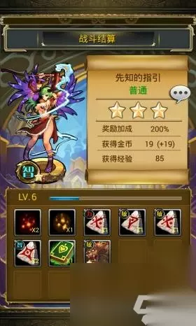 卡牌式的战斗画面 本作的玩法与同类游戏如出一辙,副本、升级卡牌、活动等,没有任何新意。游戏副本分为普通本和精英本,普通本掉落一些强化技能用的石板还有怪物卡牌。精英本则会掉落人物进阶时所需的各种材料。所有副本3星通关将会获得20钻石作为通关奖励,还算是比较让人满意的。游戏中完成指定活动会赠与玩家相应的奖励,对于0投入的玩家来说,活动难度较大。