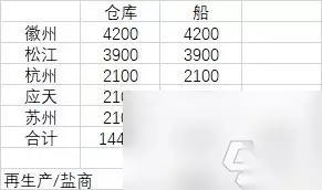 囤货方式: 趁着累消把徽州仓库升到了4200(6个仓库升四级,再加两个砖砌仓库); 应天苏州需要输出特产,不安排船存货,剩下的三个城市一条船拉满,互相运。