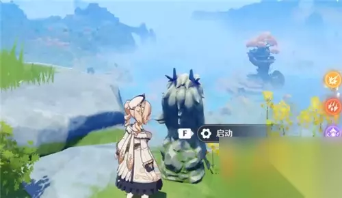 最后就是第三阶段的任务,具体位置如下图所示。需要启动三个明王像才能拿碎片,点击鼠标中键开启元素视野,如果周围有橙色的石头,就属于可以启动的明王像。