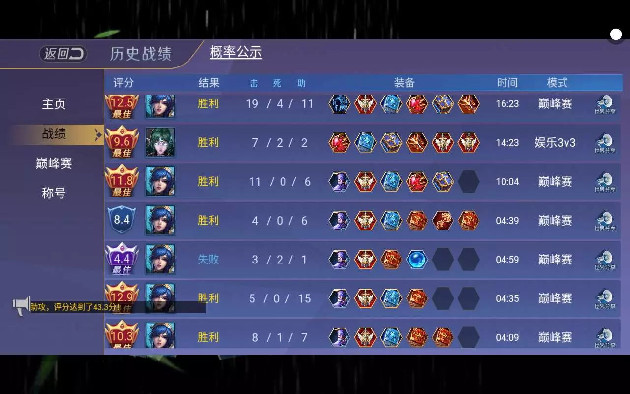 代打了许多号,雷神用了不知道多少局,可惜还是被困在了2000分的枷锁里